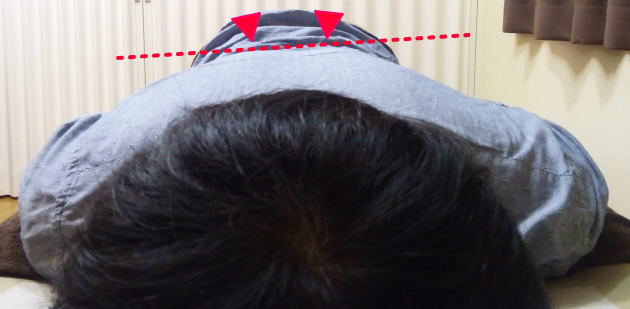 呼吸の苦しさや息苦しさを感じているのかは身体的な特徴をみれば明らかです。画像のお客さまは息苦しさを感じてぴあん整体に来店された方です。※3回目の施術前の写真